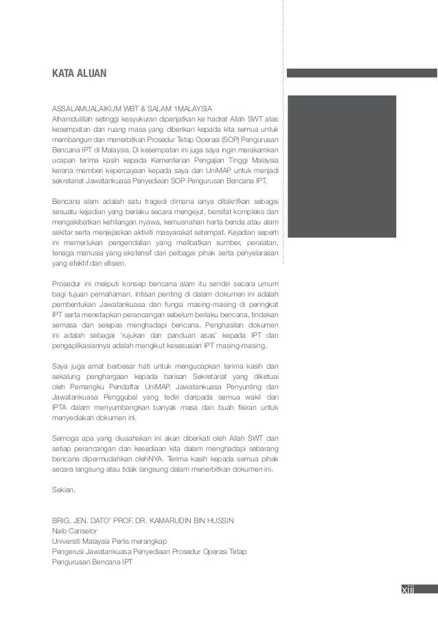 Prosedur Tetap Operasi Sop Pengurusan Bencana Di Ipt