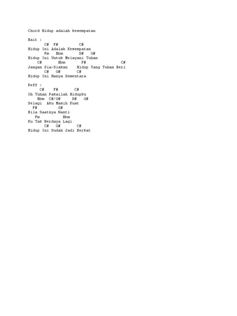 Not Angka Lirik Dan Chord Partitur Not Angka Lagu Hidup Ini Adalah Kesempatan Juni Lensdump