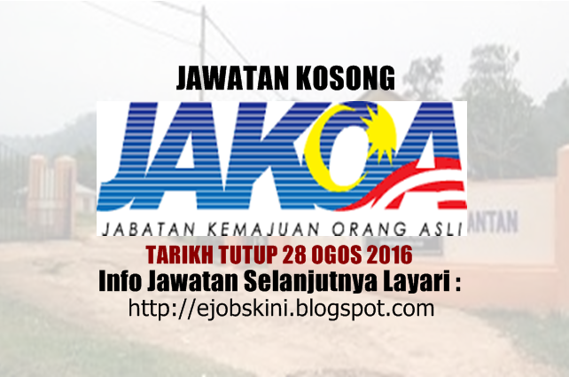 Jawatan Kosong Jabatan Kemajuan Orang Asli Jakoa 28 Ogos 2016