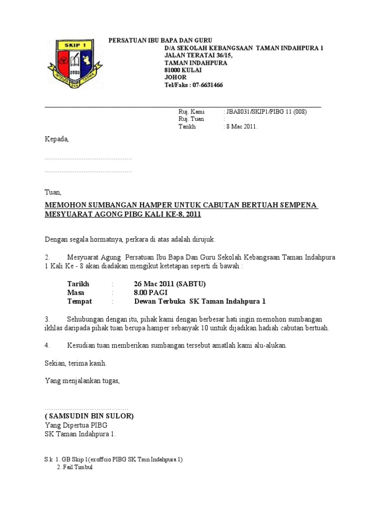 Contoh Surat Rasmi Memohon Sumbangan Wang Surat Rasmi 1